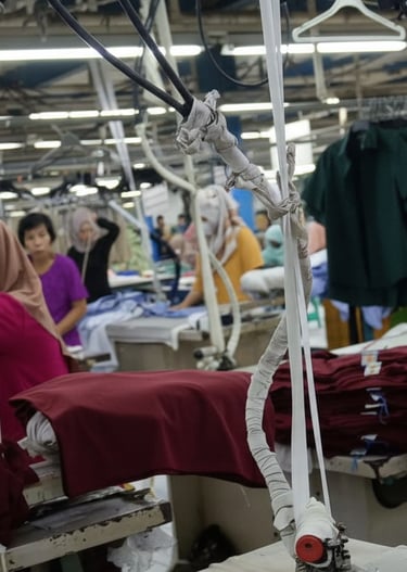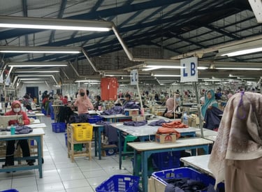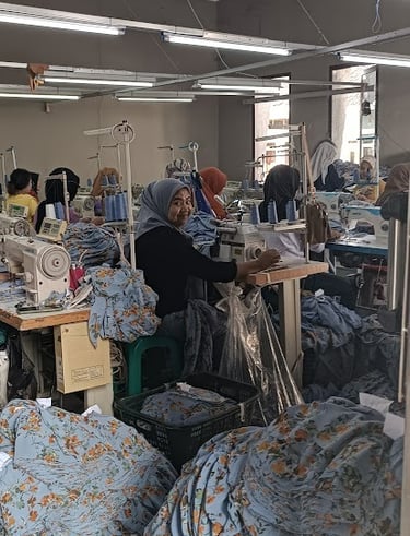 Produksi Total (FOB): Mencakup seluruh proses, dari pengembangan pola, pencarian material premium langsung dari pabrik (sourcing), cutting, menjahit, hingga packing produk siap jual.